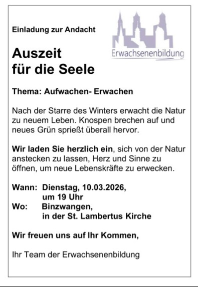 zu diesem Thema hat der Ausschuss der Erwachsenenbildung am Montag, den 12.05.2025 ins Dorfgemeinschaftshaus nach Erisdorf eingeladen. Dr. Beate Weingardt aus Tübingen die über dieses Thema referierte, konnte die zahlreich erschienenen Zuhörer und Zuhörerinnen begeistern […]