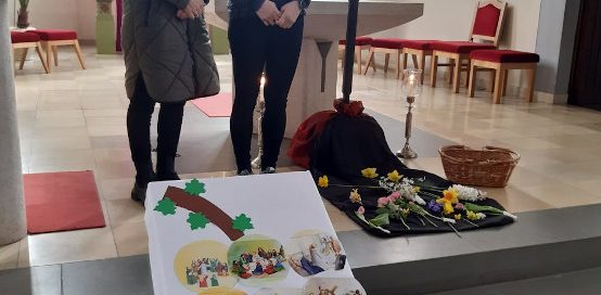 Der Einladung des Famgodi-Teams sind viele Kinder mit ihren Eltern gefolgt. Mit Gesängen, Gebeten und Bildern wurde der Kreuzweg durch das Vorbereitungsteam veranschaulicht. Die Kinder waren eingeladen, ihre mitgebrachten Blumen am Kreuz niederzulegen.