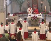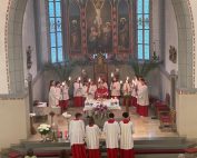 Die Pfingstvigil in St. Lambertus Binzwangen am Vorabend zu Pfingstsonntag stand im Zeichen der Feuerszungen, die durch Ministranten mit ihren Fackeln symbolisiert wurden. Musikalisch umrahmte die Schola die Vigil.