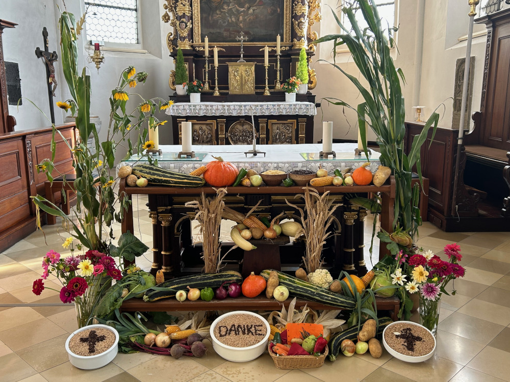 Du schenkst dem Menschen Brot von der Erde und Wein, der sein Herz erfreut.“ (Vgl. Ps 104 (103), 13-15). Wir durften am 1. Oktober unser Erntedankfest feiern. Dazu möchten wir uns ganz herzlich bei allen bedanken die in irgendeiner Weise dazu beigetragen haben. Herrn Pfr. Stork für die Feier der Messe und besonders der Landjugend für die Gestaltung des Erntedank Altares und den Spendern der Früchte.