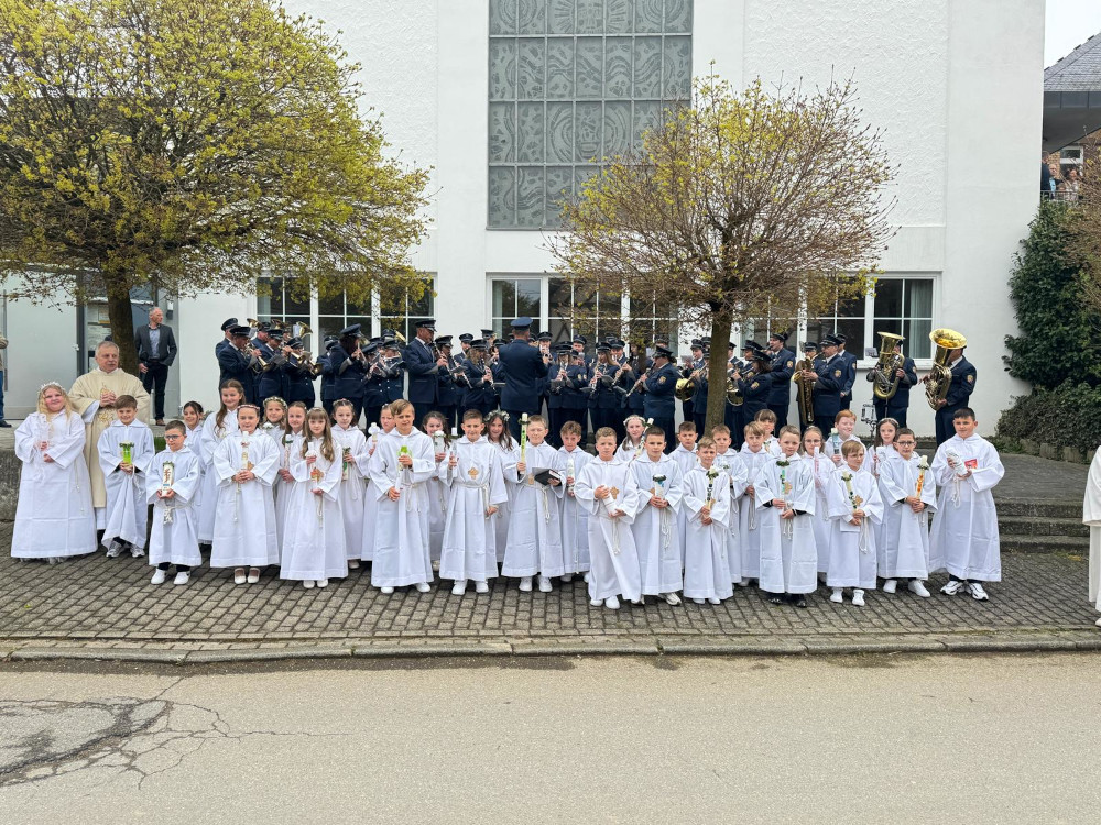 In diesem Jahr fand die Erstkommunion in St. Johannes Ev. Dürmentingen statt. 21 Kinder aus Ertingen, 8 Kinder aus Binzwangen, 2 Kinder aus Erisdorf und 1 Kind aus Neufra empfingen dort im feierlichen Gottesdienst mit Pfarrer Stork zum ersten Mal die Heilige Kommunion. Musikalisch mitgestaltet wurde die Feier von der Band Joyce und Hannah Renz an der Orgel. Nach dem Gottesdienst spielte die Musikkapelle Ertingen zum Ständchen auf.