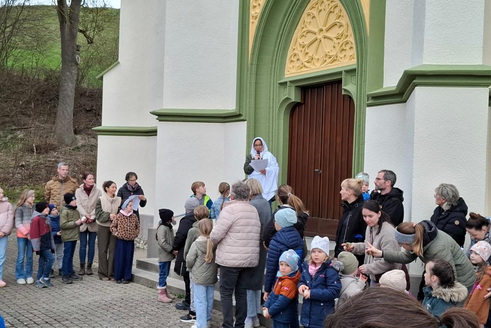 Am Samstag fand, ebenfalls vom Fagodi-Team organisiert, wieder eine Kinderosternacht statt. Die Kinder erlebten drei Stationen – angefangen vom Palmsonntag, dem letzten Abendmahl und über das Lagerfeuer, an dem die Jünger mit dabei saßen bis hin zum leeren Grab. Nach dem Verkünden der Auferstehung durch Maria Magdalena zogen alle mit einem Licht in die Kirche ein. Nach einer Geschichte über die Bedeutung von Steinen verabschiedete sich das Fagodi-Team. Jeder Besucher durfte noch seinen Stein der Angst, der Verzweiflung, der Bedrückung oder der Trauer am offenen Grab ablegen.