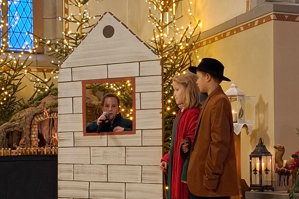 15 Kinder haben am Nachmittag des Heiligen Abend mit ihrem Krippenspiel eine besondere Atmosphäre in die St. Lambertus Kirche gezaubert. Das Fagodi-Team um Verena, Tanja, Sabrina, Bianca und Kathrin hat in diesem Jahr ein Stück ausgewählt, in dem die Kinder ein Geschenk für Jesus, der ja Geburtstag hat, suchen. Über die Oma, die Ihnen die Geschichte um die Geburt Jesu erzählt und die währenddessen vorgespielt wird, bekommen die Kinder eine Antwort. Umrahmt wurde das Spiel mit weihnachtlichen Liedern, begleitet von Frau Butscher-Reck an der Orgel. Die Spielfreude war den Kindern deutlich anzumerken, und auch für die zahlreichen Besucher war es ein schönes Erlebnis. Ein herzliches Vergelt`s Gott an alle kleinen Akteure, das Fagodi-Team für die mühevolle Vorbereitung und die eingebrachte Zeit und der Organistin Elli.
