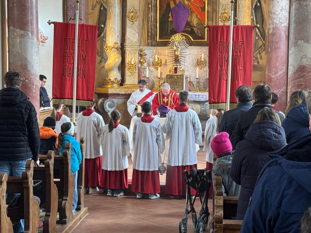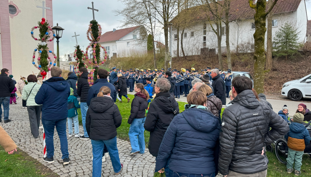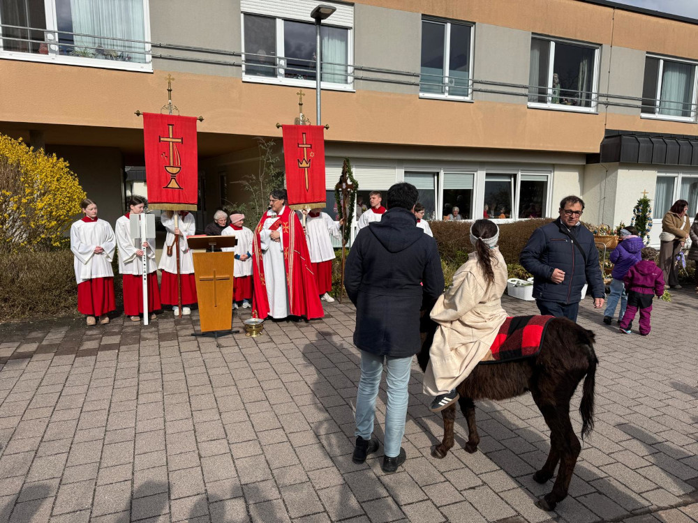 Zu Beginn der Karwoche hat sich die Kirchengemeinde Ertingen am Palmsonntag vor dem Seniorenzentrum versammelt – Diakon Oliver Mayer machte hier den Beginn. Anschließend zog die Prozession unter den Klängen der Musikkapelle zur Pfarrkirche um an den Einzug Jesu in Jerusalem zu erinnern. Pfarrer Stork freute sich über die vielen Palmträger, die mit dazu beitragen, dass der schöne österliche Brauch gepflegt wird. An dieser Stelle sei allen Dank gesagt, die sich die Mühe gemacht haben, Palmen zu basteln.