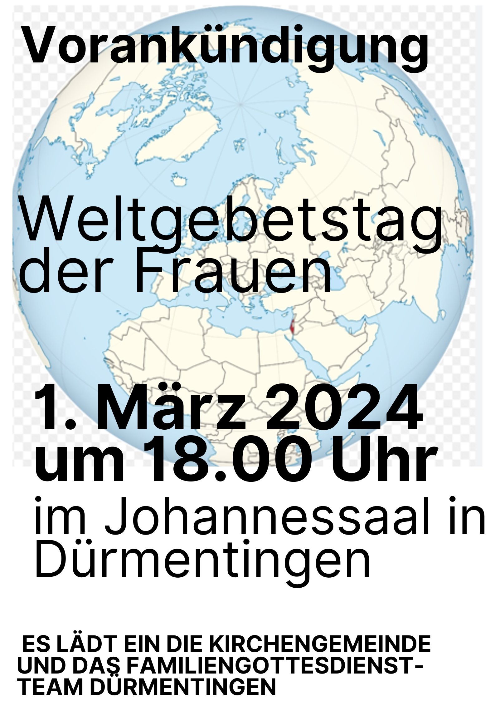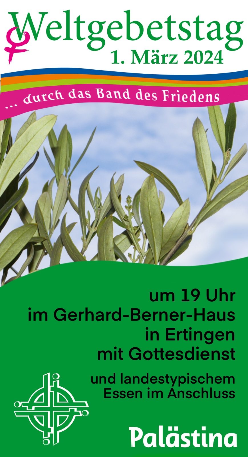 Herzliche Einladung zum ökumenischen Weltgebetstag der Frauen, der in diesem Jahr im Gerhard Berner Haus in Ertingen am 1. März um 19:00 Uhr stattfindet.